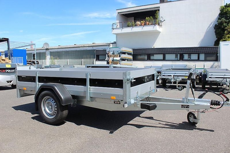 Die verstärkten Seitenbordwände haben eine Höhe von 40 cm für ein höheres Ladevolumen. Der Anhänger ist leicht zu beladen und hat eine klappbare Vorder- und Rückwand für die Beladung längerer Güter.